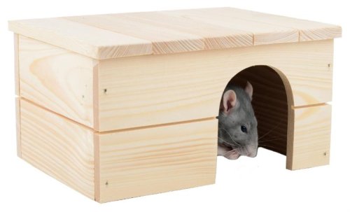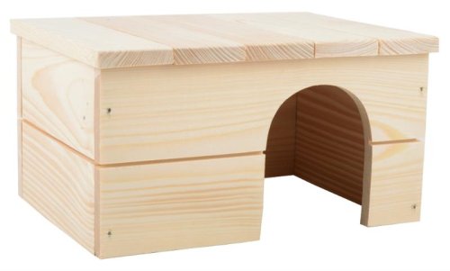 Drevený domček s rovnou strechou pre morča, osmáka a iné drobné hlodavce. Veľmi jednoduchá údržba vo vnútri domčeka. Domček nemá dno, takže ho stačí iba odklopiť a miesto pod ním vyčistiť. Na výrobu domčeka bolo použité prírodné drevo, ktoré nie je nijako napustené ani natreté. Rozmery: 24 x 18 x 13 cm
