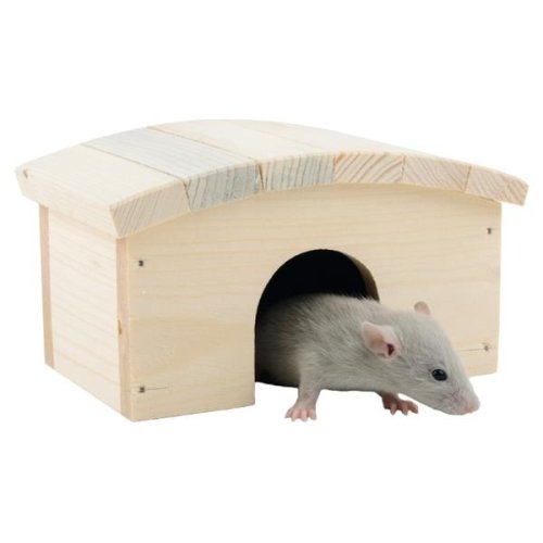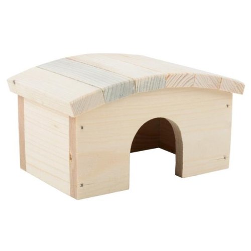 Domček z dreva listnatých stromov s oblúkovitou strechou, ktorý poskytne vášmu miláčikovi ďalší vyvýšený priestor v klietke. Skvelé miesto na hru i odpočinok. Svojou veľkosťou je vhodný predovšetkým pre škrečky, myši a ďalšie drobné hlodavce. Veľmi jednoduchá údržba vo vnútri domčeka. Domček nemá dno, takže ho stačí iba odklopiť a miesto pod ním vyčistiť. Na výrobu domčeka bolo použité prírodné drevo, ktoré nie je nijako napustené ani natreté. Rozmery: 14 x 10 x 8 cm (dĺžka x šírka x výška) 5 x 5 cm (výška x šírka otvoru)