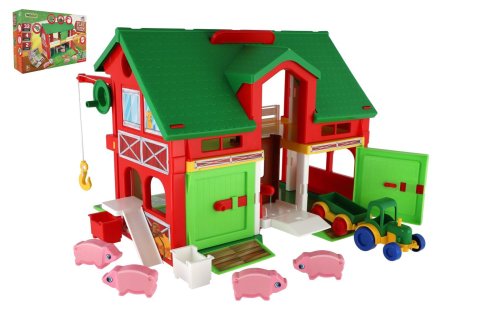 Vitaj na farme plnej zvieratiek a dobrodružstva! Herný set Play House - Farma umožňuje deťom vytvoriť si vlastný vidiecky svet, kde sa môžu starať o zvieratá tka.k Sada obsahuje ohradu, farmárov, náradie, zvieratká a ďalšie tematické doplnky. Hra podporuje predstavivosť, empatiu aj jemnú motoriku. Deti sa môžu hrať na kŕmenie, upratovanie alebo prevoz zvieratiek - zábava, ktorá nikdy nekončí. Pomocou výťahu dokáže upratovať aj balíky sena. Na farme nesmie chýbať traktor s valníkom, ktorý obstará poľnú prácu. Veľkosť: 30x37 cm Vhodné pre deti od 3 rokov.