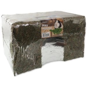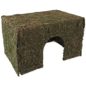 - Domček zo sena vhodný pre hlodavce strednej veľkosti, napríklad pre morčatá, osmáky a potkany .