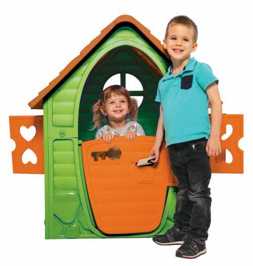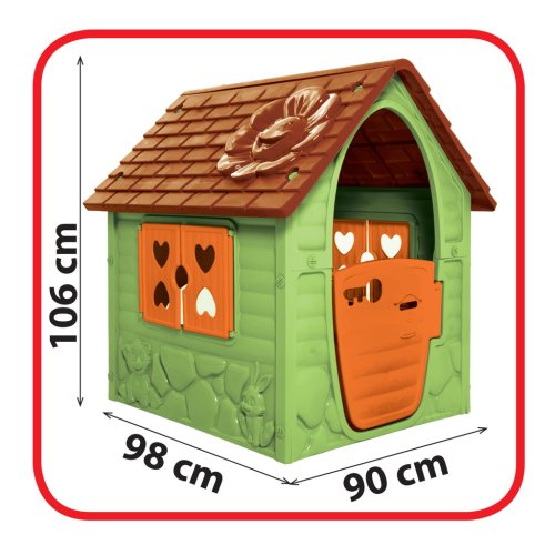 Domček s kytičkou zelený s oranžovými dverami a oknami s hnedou strechou - veľmi jednoduché zostavenie. Domček má jedno otváracia okno, otváracie dvere. Pre svoju veľkosť je vhodný pre vonkajšie aj vnútorné použitie. Vyrobené z kvalitného a odolného plastu v EÚ.