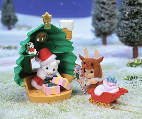 Sada Santov vianočný domček v tvare stromčeka s figúrkami a doplnkami vykúzli tú pravú vianočnú atmosféru. Sada obsahuje dve figúrky snežného leoparda Lalu oblečenú v santovských šatách a čiapku, karamelového psa Justina v kostýme vianočného soba. Súčasťou sú krásne doplnky: sánky, darček, vrece na darčeky, dodacia karta, tri ozdoby na domček a tri darčeky - mini stromček, mini vzducholoď a plyšové zvieratko. Hračky Sylvanian Families rozvíjajú predstavivosť a povzbudzujú deti k hraniu rolí. Hra s figúrkami rozvíja kreativitu a učí emóciám vytváraním a rozprávaním príbehov založených na každodenných zážitkoch a pozorovaní sveta. Vyznačujú sa najvyššou kvalitou a výnimočným dôrazom na detaily. Figúrky Sylvanian Families sú pokryté mäkkým semišom, majú pohyblivé končatiny a hlavu. Oblečenie je možné z figúrok zložiť a vymeniť za iný outfit. Balené v krabičke. Rozmery balenia: 15 x 18 x 8,5 cm. Vek: 3+