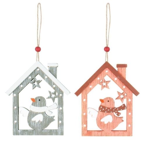 dekorácia na zavesenieDomček s vtáčikom drevený 8 cm na zavesenie