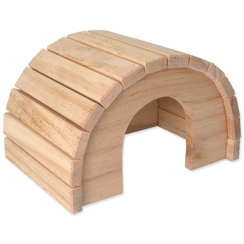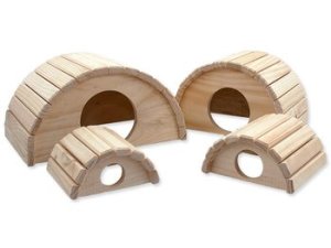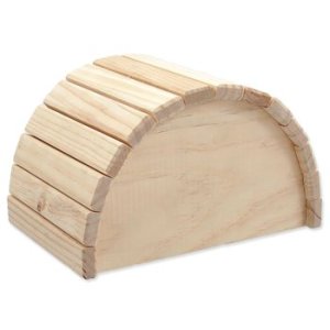 Drevený polkruhový domček pre hlodavce.