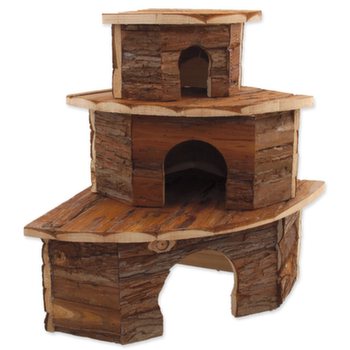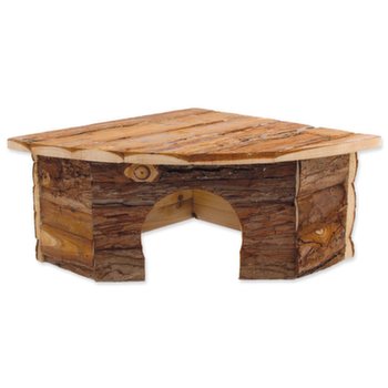 Domček Small Animals Rohový drevený s kôrou 30x30x16cm