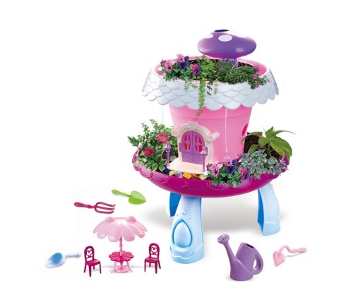 Produkt „Domček so záhradkou – zasaj a staraj sa“ predstavuje interaktívny záhradný set určený pre deti od troch rokov, ktorý kombinuje zábavu s prvkami starostlivosti o rastliny a rozvojom trpezlivosti. Hlavným motívom je ružový domček v tvare kvety, ktorého strecha je ozdobená bielymi strechovitými okrajmi a fialovou hubkou, ktorá slúži ako zavlažovací prvok. Domček je postavený na modrých nožičkách, ktoré mu dodávajú stabilitu a zároveň umožňujú pohodlnú prácu s rastlinkami na dvoch úrovniach. V okolí domčeka je priestor na pestovanie rastlín v kvetináčoch, čo deťom umožňuje sledovať rast ich vlastných výpestkov.