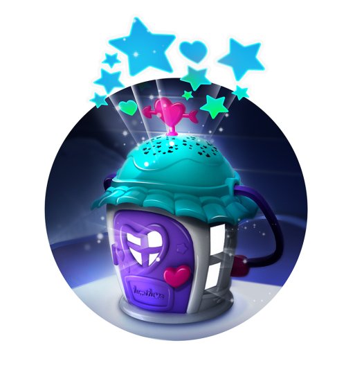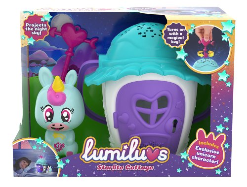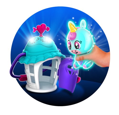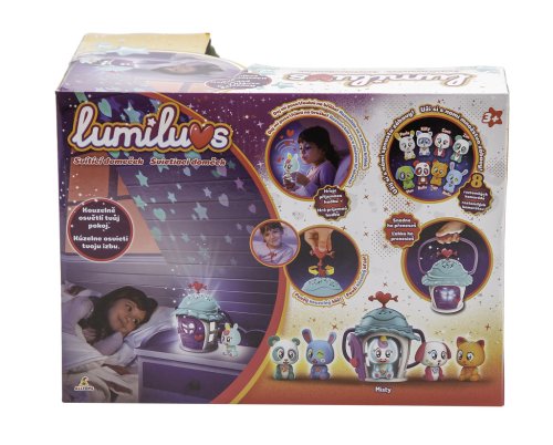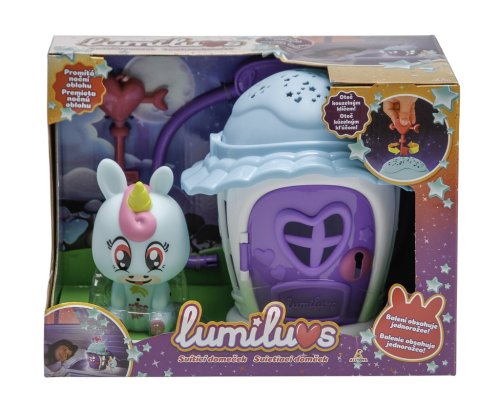 Set domčeka a Jednorožca. Domček pre Lumiluvs zahrá hudbu a rozsvietia hviezdy a srdiečka. Jednorožec svieti a brble po fúknutí na bruško a pusinke. Batérie: 3xAAA nie je súčasťou balenia (domček), 3xLR44 je súčasťou balenia (figúrka). Pre deti od 3 rokov.
