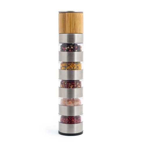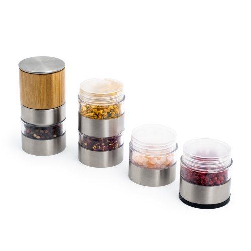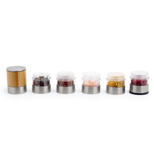 Keramický manuálny mlynček MULTI 5v1 je veľmi univerzálny. Môžete ho použiť na soľ a korenie alebo viacerých druhov korenia. Mletie prebieha pomôcť veľmi kvalitného keramického mechanizmu, vďaka ktorému bude soľ, korenie aj korenie ideálne namleté. Mlecí mechanizmus môžete navyše ľahko nastaviť na niekoľko hrubosťou mletia. Vnútorné delenie je navrhnuté tak, aby si koreniny uchovalo svoju arómu, ktoré zároveň nikdy neprejde do inej časti. Celý mlynček je veľmi krásne a dizajnovo spracovaný. Bude netradičné ozdobou v kuchyni i pri stolovaní. Vďaka tomu, že je mlynček priehľadný, máte neustále výborný prehľad, kde máte ktoré korenie a či nie je potrebné doplniť. Mlynček sa skvele hodí na cestovanie, kde budete potrebovať variť. Nemusíte viezť veľa koreničiek či vrecúšok, stačí tento jeden mlynček.