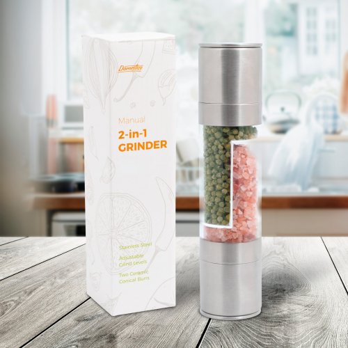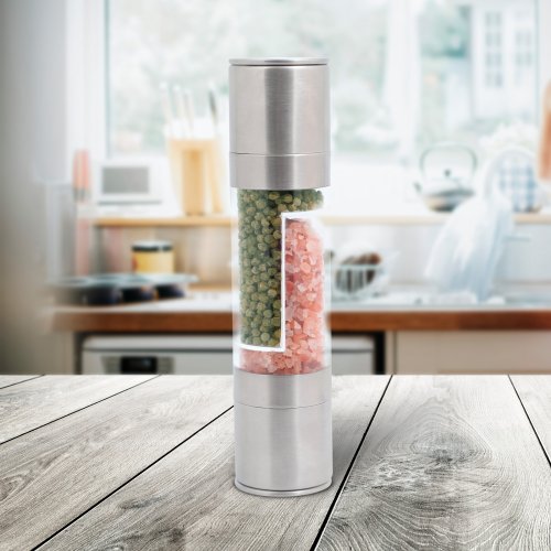 Obojstranný manuálny mlynček Duette 2v1 je veľmi univerzálny. Môžete ho použiť na soľ a korenie či akejkoľvek korenie. Mletie prebieha pomôcť veľmi kvalitného keramického mechanizmu, vďaka ktorému bude soľ, korenie aj korenie ideálne namleté. Mlecie mechanizmy môžete navyše ľahko nastaviť na niekoľko hrubosťou mletia. Vnútorné delenie je navrhnuté tak, aby si koreniny uchovalo svoju arómu, ktoré zároveň nikdy neprejde do druhej časti. Celý mlynček je veľmi krásne a dizajnovo spracovaný. Bude netradičné ozdobou v kuchyni i pri stolovaní. Vďaka tomu, že je mlynček priehľadný, máte neustále výborný prehľad, kde máte ktoré korenie a či nie je potrebné doplniť.