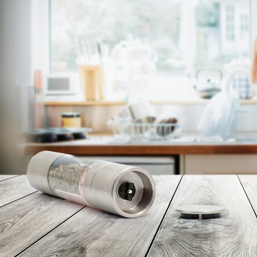 Materiál: nehrdzavejúca kartáčovaná oceľ, plast, keramický mlecí mechanizmus