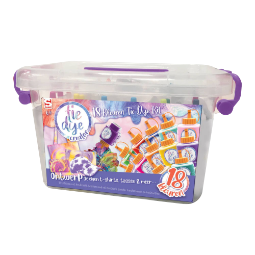 18 liekoviek s rôznymi farbami na batikovanie.