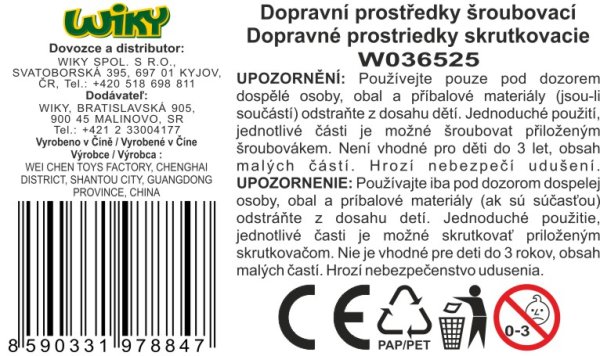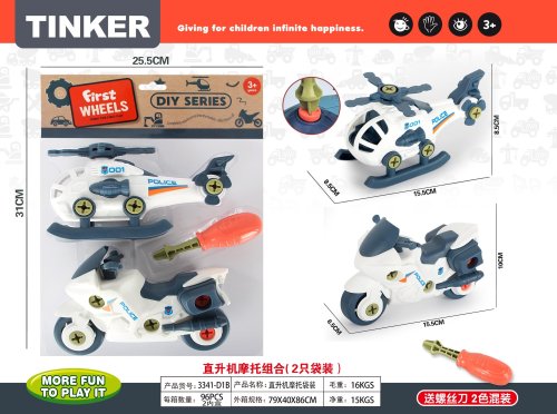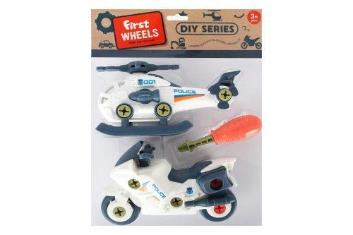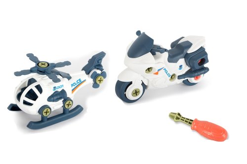 Dopravné prostriedky skrutkovacie. Veľkosť 15,5 cm. Obsah balenia - helikoptéra, motorka, skrutkovač.