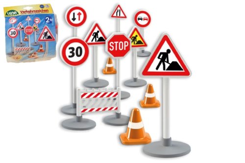 Súprava dopravných značiek. Sada obsahuje 17 dopravných značiek so stabilizačným podstavcom. Rozmer 16 cm. Vhodné od 2 rokov.