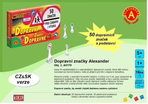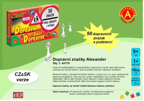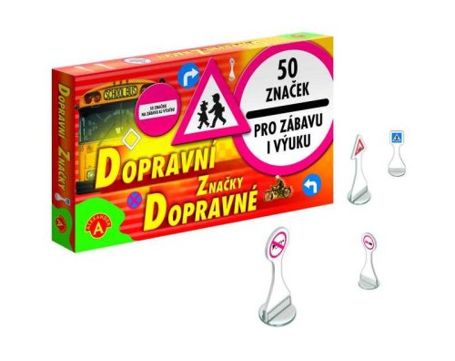 Dopravné značky. Značky sú vysekané z pevného materiálu a vkladajú sa do plastových stojančekov. Balenie obsahuje 50 ks značiek.
