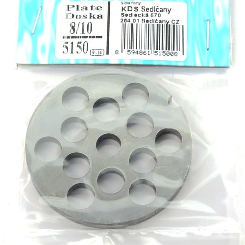 Mäsodoska do mäsostroja č.8, otvory priemer 10 mm. Balené v igelite. EAN 8594861515008