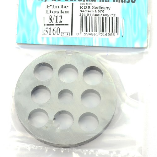 - mäsová doska do mäsového strojčeka č. 8, otvory ¤ 12 mm - český výrobca - balené v igelite - EAN 8594861516005