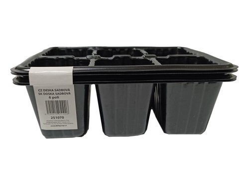 veľkosť sadbovej dosky: 17 x 12,4 x 5,5 cm veľkosť polí: 5,5 x 5 x 5 cm materiál: PET hmotnosť: cca 18 g/ks
