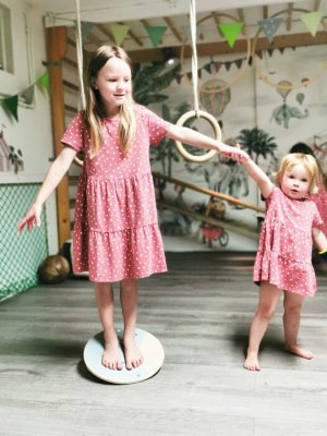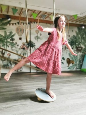 Okrúhla doska poskytuje dostatok miesta na státie. Vyrába sa z prírodného dreva a vďaka jednoduchému dizajnu a jemným farbám sa hodí do každej detskej izby, obývačky či inej miestnosti. Kúpte si k balančnej doske ďalšie produkty z radu Adventure a vytvorte gymnastickú telocvičňu.