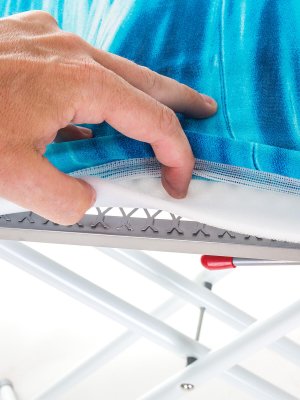 Žehliaca doska BASIC je jednoduchá žehliaca doska pre každodenné žehlenie. Kovová doska Mash, kovová odkladacia plocha na žehličku. Biela povrchová úprava konštrukcie.