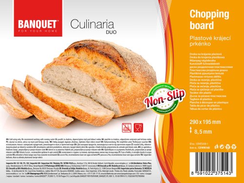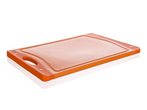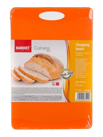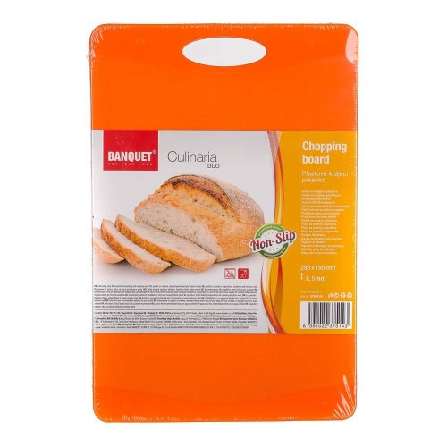 Doštička krájacia plastová CULINARIA DUO, dvojfarebné prevedenie (dva odtiene oranžovej), protišmyková úprava. Doštička sa ľahko udržuje a je vhodná na krájanie s oceľovými aj keramickými nožmi.