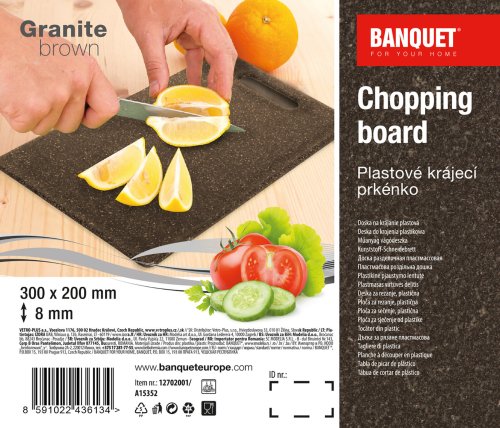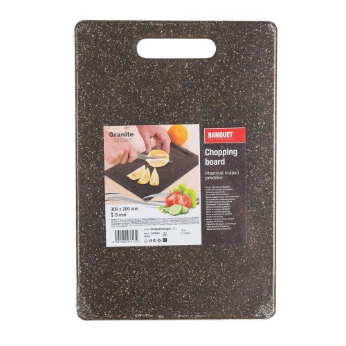 Krájacia plastová doštička GRANITE Dark Brown, vyrobená z kvalitného plastu pre každodenné použitie. Doštička sa ľahko udržuje a je vhodná na krájanie s oceľovými aj keramickými nožmi.
