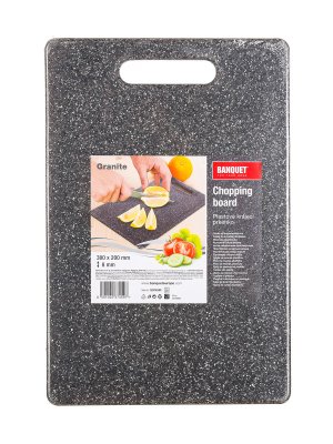 Plastová krájacia doštička GRANITE, vyrobená z kvalitného plastu pre každodenné použitie. Doštička sa ľahko udržuje a je vhodná na krájanie s oceľovými aj keramickými nožmi.