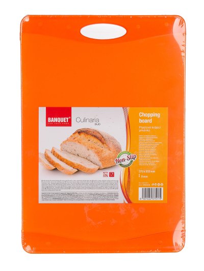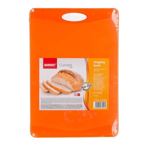 Doštička krájacia plastová CULINARIA DUO, dvojfarebné prevedenie (dva odtiene oranžovej), protišmyková úprava. Doštička sa ľahko udržuje a je vhodná na krájanie s oceľovými aj keramickými nožmi.