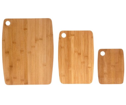 Súprava drevených dosiek na krájanie vyrobených z kvalitného bambusu, ideálna pre rôzne kuchynské úlohy. Táto sada obsahuje tri veľkosti dosiek a je dodávaná vo farebnom obale s dizajnom.