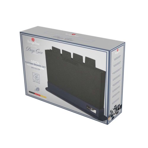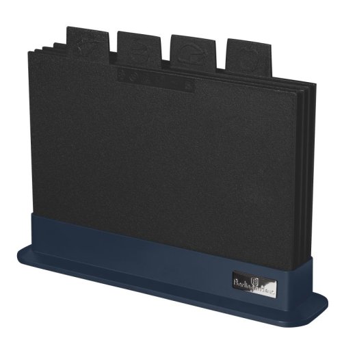 Pripravujte svoje obľúbené suroviny s ľahkosťou a eleganciou vďaka tejto praktickej sade piatich krájacích dosiek. Vyrobená z odolného plastu v krásnej matnej modrej farbe, sada obsahuje štyri dosky označené jazýčkami pre ľahkú orientáciu, aby ste mohli bezpečne krájať rôzne druhy potravín bez obáv z krížovej kontaminácie. Praktický stojan so strieborným logom udrží všetko na svojom mieste a zaistí poriadok v kuchyni. Ľahká a skladná, táto sada je ideálny pomocník na každodennú prípravu jedál.
