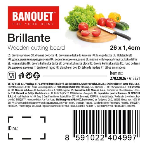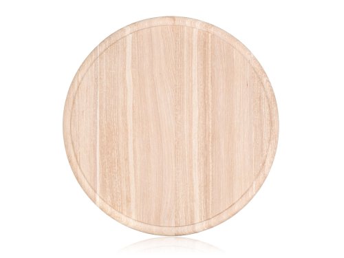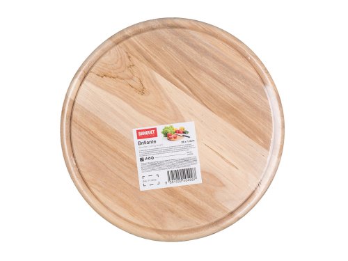 Drevená doštička vyrobená z brezového dreva. Doska má okrúhly tvar s drážkou po okraji, výška dosky je 1,4 cm. Tradičný prírodný materiál na prípravu potravín je určený pre tých, ktorí dávajú prednosť drevu pred plastom.