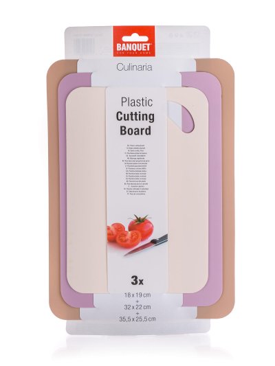 sada obshauje 3 dosky: 27,9 cm, 32 cm, 35,5 cm materiál: plast mix farieb: béžová, hnedá, fialová