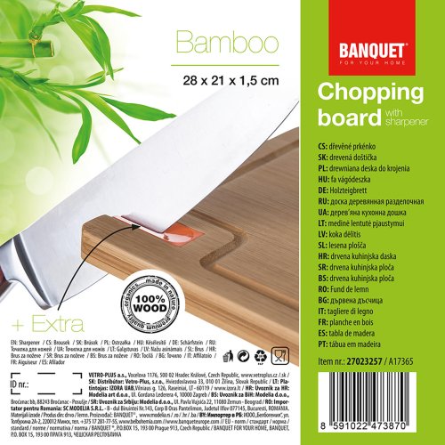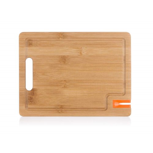 Doštička drevená krájacia, s keramickou ostričkou nožov, Brillante Bamboo je vhodná na krájanie mäsa, zeleniny a ďalších potravín. Doštička je vyrobená z bambusu a má praktický otvor na zavesenie. Ďalej je opatrené praktickou ostričkou nožov a odtokovým kanálikom po obvode dosky.