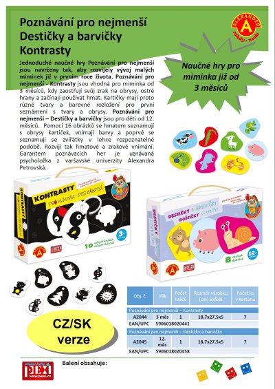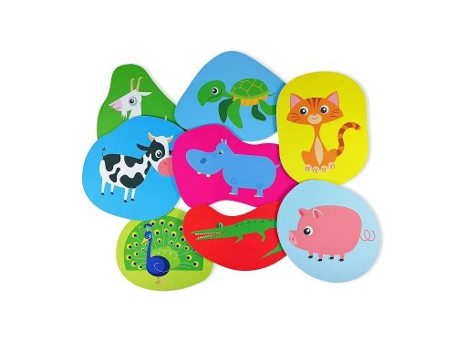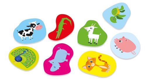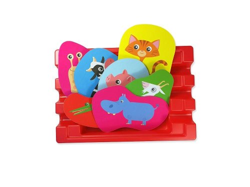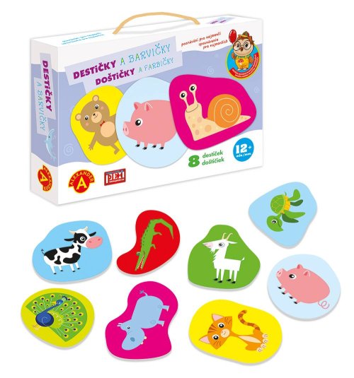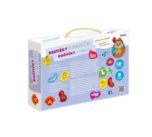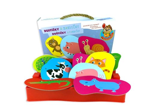 Doštičky a farbičky sú pre deti od 12. mesiacov. Pomocou 16 obrázkov sa hmatom zoznamujú s obrysmi kartičiek, vnímajú farby a prvýkrát sa zoznamujú so zvieratkami v ľahko rozpoznateľnej podobe. Rozvíja tak hmatové a zrakové vnímanie.