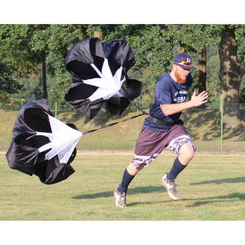 Brzdiaci padák Merco Resistance vám pomocou progresívneho odporu pomôže zdokonaliť silový aj rýchlostný tréning spodnej polovice tela. Zaujímavosťou je, že odpor vzduchu spôsobí spätnú ťažnú silu, takže čím rýchlejšie bežíte, tým väčšia je práve táto ťahová sila. Okrem nárastu dynamiky a vytrvalosti vedie používanie odporového padáku Merco Resistance aj k zdokonaleniu dĺžky a frekvencie kroku, čím je dosiahnutá maximálna finálna rýchlosť. Súčasťou padáku Merco Resistance sú všité panely zo sieťoviny, ktoré zaistia, aby sa ťažné popruhy nezamotávali a stabilizujú padák v priebehu pohybu pre optimálny záber padáku . Brzdiaci padák Merco Resistance je vyrobený z vodeodolného polyesteru, jeho priemer je 140 cm = odpor približne 30 lb (14 kg) a je vybavený 160 cm dlhým polyesterovým popruhom s plastovou prackou, ktorý ľahko a rýchlo pripnete k 5 cm širokému bedrovému pásu s možnosťou nastavenie obvodu až do 110 cm. Balenie odporového padáku Merco Double Resistance obsahuje dva tieto padáky a ako tréningová pomôcka je ideálna pre všetkých športovcov, ktorí potrebujú až dvakrát rýchlejšie zlepšiť rýchlosť a silu spodnej polovice tela pomocou behu.