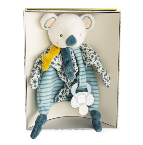 Plyšová koala Yoca je 2v1, držiak na cumlík a ľahká prikrývka. Sprevádza bábätko od narodenia, aby mu priniesla hebkosť, pohodlie a tiež držala cumlík v jeho blízkosti. Je to veľmi pekný darček na Vianoce alebo na oslavu narodenia bábätka. Je extrémne mäkká a príjemná na dotyk. Rozkošná koala je posadená do nádhernej darčekovej krabičky s grafikou evokujúcou modernosť i luxus. Údržba : Perte v kúpeli na 30 °. Prirodzené alebo nízkoteplotné sušenie. Hlavné vlastnosti: mäkký plyš, prémiový materiálv súlade s európskymi normami CEkrásna darčeková krabičkavhodné od narodenia