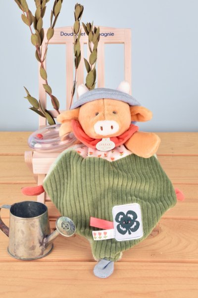 Kravička Aneth o veľkosti 21 cm z kolekcie „Moja záhrada“ je roztomilá hračka s hrkálkou v tvare krúžku s malými farebnými guličkami. Hrkálka stimuluje zmysly dieťaťa a pomáha mu rozvíjať jemnú motoriku. Kravička v klobúčiku má na sebe zelený menčestrový obleček s kvetovaným golierom. Nabáda na skúmanie a maznanie a dieťa zabaví aj upokojí. Je zabalená v peknej potlačenej darčekovej krabičke na uloženie spomienok (fotografie a ďalšie pripomienky narodenia bábätka) s veršovaným textom v angličtine na spodnej strane. Ideálny darček pre akúkoľvek príležitosť. ÚdržbaPerte v kúpeli na 30 °. Sušte prirodzene alebo v sušičke pri nízkej teplote. Hlavné vlastnosti: hračka s hrkálkou prémiový materiál podporuje zmyslový a motorický vývoj dieťaťa v súlade s európskymi normami CE darčeková krabička pre uloženie spomienok vhodné od narodenia ideálny darček