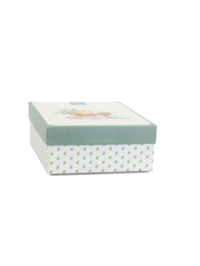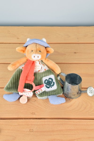 Kravička Anette o veľkosti 19 cm z kolekcie „Moja záhrada“ je roztomilá hračka s praktickým integrovaným úchytom cumlíka. Je oblečená do zeleného menčestrového oblečku s kvetovaným golierom. Rôzne textúry nabádajú na skúmanie a stláčanie a dieťa zabaví aj upokojí. Hračka je zabalená v peknej darčekovej krabičke na uloženie spomienok (fotografie a ďalšie pripomienky narodenia bábätka) s veršovaným textom v angličtine na spodnej strane. Ideálny darček pre akúkoľvek príležitosť. Kolekcia hračiek „In my garden“ – Moja záhrada je inšpirovaná prírodou. Hračky sú zabalené v pekných darčekových krabičkách ilustrovaných akvarelom a pripomínajú rôznorodosť a farby záhrady, čo je podčiarknuté aj ich menami ako je Ciboulette (pažítka), Aneth (kôpor) a ďalšie. ÚdržbaPerte v kúpeli na 30 °. Sušte prirodzene alebo v sušičke pri nízkej teplote. Hlavné vlastnosti: držiak na cumlík a hračka 2 v 1prémiový materiálv súlade s európskymi normami CEdarčeková krabička pre uloženie spomienokvhodné od narodeniaideálne ako darček