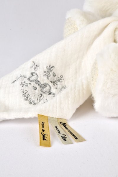 Plyšový medvedík je ideálnym darčekom pre deti už od narodenia. Súčasťou medvedíka je mäkučká dečka, ktorá je skvelá na maznanie a môže pomôcť bábätku ľahšie zaspať. Dečku je možné jednoducho schovať do bruška medvedíka, čo je praktické pri cestovaní alebo ukladaní. Je ozdobená jemnou výšivkou značky Doudou a saténovými stuhami s láskyplnými odkazmi vo francúzštine, ktoré dodávajú každému maznaniu ešte nežnejší pocit. Medvedík má štýlové ružové srdiečko na labke, roztomilý béžový golier pod krkom a hebké béžové labky, ktoré mu dodávajú nežný a priateľský vzhľad. Vďaka jemným, trendovým farbám a kvalitným, hebkým materiálom je ideálny pre malé deti, ktorým prináša pocit bezpečia a pohodlia. Perfektný tip na darček, ktorý poteší a zároveň stimuluje zmysly Vášho bábätka. Údržba : Perte v kúpeli na 30 °. Prirodzené alebo nízkoteplotné sušenie. Hlavné vlastnosti: mäkký plyš, prémiový materiálvhodné od narodenia v súlade s európskymi normami CEideálna ako darčekpraktická darčeková krabička