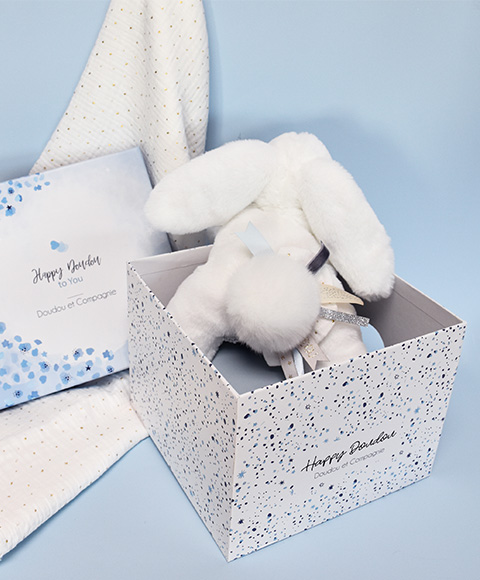 Tento zajačik môže byť kamarát, vankúšik, alebo aj výzdoba detskej izby. Je extrémne mäkký, štýlový s brmbolcom v bielej farbe a efektnou šatkou okolo krku. Praktická hračka na hranie doma alebo prechádzku. Pre bábätko bude mať predovšetkým upokojujúci efekt. Vďaka jemným harmóniám trendy farieb, zmesiam veľmi jemných materiálov bude táto hračka lákať malé aj väčšie deti. Rozkošný zajačik je posadený do nádhernej darčekovej krabičky s grafikou evokujúcou modernosť i luxus. Ideálne aj ako dá rek. Údržba : Perte v kúpeli na 30 °, aby si zachoval svoju hebkosť. Prirodzené alebo nízkoteplotné sušenie. Hlavné vlastnosti: mäkký plyš, prémiový materiál v súlade s európskymi normami CEkamarát, vankúšik, alebo tiež výzdoba detskej izby vhodné od narodenia