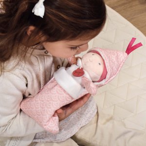 Cena uvedená za 1 ks. S týmito bábätkami bude skvelá zábava. Sú dobre zabalené v pohodlných prikrývkach, ktoré ladia s ich pyžamkom (s kvetinovou potlačou, pre odtiene fialovej a tmavo ružovej). Každá bábika drží v ruke malú fľaštičku a je možné ju používať nezávisle na prikrývke. Táto prikrývka a jej bábätko ponúkajú skvelé chvíle hry a umožňuje deťom starať sa o bábätko "ako dospelí". Údržba: Perte v kúpeli na 30 °. Prirodzené alebo nízkoteplotné sušenie. Hlavné vlastnosti: mäkký plyš, prémiový materiálmalý formát vhodný pre novorodencovv súlade s európskymi normami CEvhodné od narodenia