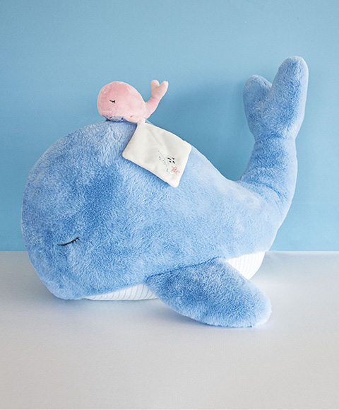 Táto obrovská modrá veľryba môže byť kamarát, vankúšik, alebo aj výzdoba detskej izby. Uteší aj Vaše dieťa počas veľkých smútkov, upokojuje a podnecuje jeho fantáziu. Je extrémne mäkká a štýlová. Pripomína sladké chvíle strávené v kontakte s vodou a slnečnými lúčmi. Táto plyšová hračka je tiež ideálna ako dá rek. Údržba : Perte v kúpeli na 30 °. Prirodzené alebo nízkoteplotné sušenie. Hlavné vlastnosti: mäkký plyš, prémiový materiál v súlade s európskymi normami CEkamarát, vankúšik, alebo tiež výzdoba detskej izby vhodné od narodenia
