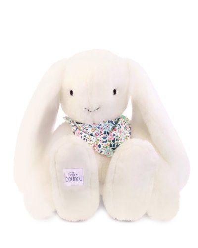 Doudou Plyšový králik XXL so šatkou biely 50 cm