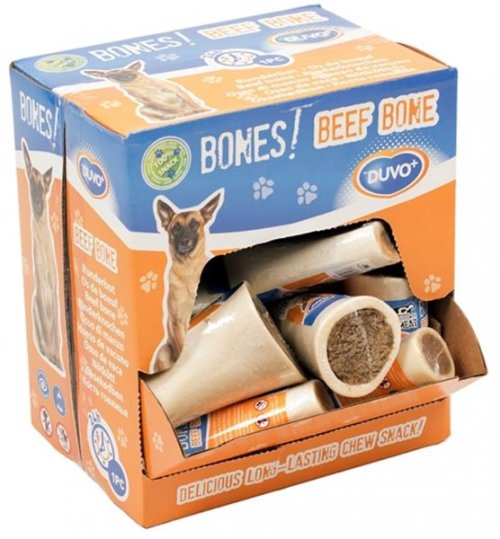Hovädzia kosť plnená mäsovou zmesou vhodná pre stredné a veľké plemená psov Táto kosť je mimoriadne chutná vďaka masovej náplni. Báječné žuvanie, ktoré vydrží dlho a uspokojí žuvací inštinkt Vášho obľúbeného štvornohého kamaráta.