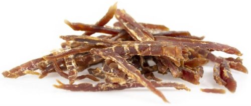 Zloženie: mäso a výrobky živočíšneho pôvodu (90 % kačacie prsia), vedľajšie výrobky rastlinného pôvodu, oleje a tuky, bielkovinové extrakty rastlinného pôvodu, minerálne látky. Analytické zložky: hrubý proteín 42%, hrubý tuk 1%, hrubá vláknina 2%, hrubý popol 2%, vlhkosť 22%. Doplnkové látky: konzervanty povolené EÚ Kŕmny návod: Podávajte ako odmenu či maškrtu. Nie je určené pre šteňatá do 6 mesiacov. Zaistite psovi vždy dostatok pitnej vody. Nie je určené pre ľudskú spotrebu. Uchovávajte v suchu a chlade. Nevystavujte priamemu slnečnému svetlu.