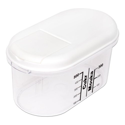 - transparentná dóza s odmerkou vhodná na sypké hmoty - na ukladanie múky, cukru, strúhanky, krupicu ai. - odmerka na múku, cukor, vodu - rozmery 16.5 x 9 x 8 cm - český výrobca - EAN 8590474916300
