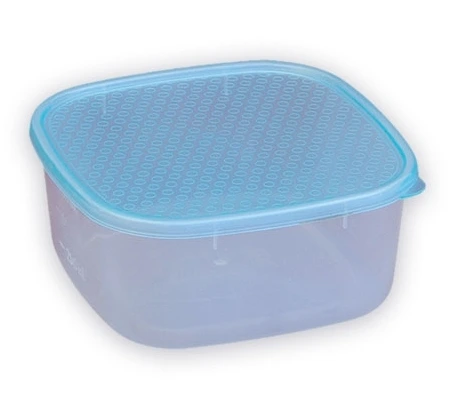 Rozmery 14,5 x 14,5 x 6,5 cm, objem 900 ml. Farba veka podľa skladovej dostupnosti (žltá, zelená, modrá, červená). Vhodné do mrazničky, umývačky a mikrovlnnej rúry. Materiál polypropylén atestovaný na styk s potravinami. Odmerné rysky na stene dózy. Vyrobené v EÚ. EAN 8595249614108