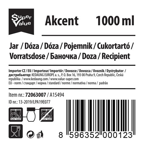 Sklenená dóza AKCENT s nerezovým viečkom je určená na skladovanie prakticky všetkých potravín, či už je to korenie, cestoviny, strukoviny alebo cukor.