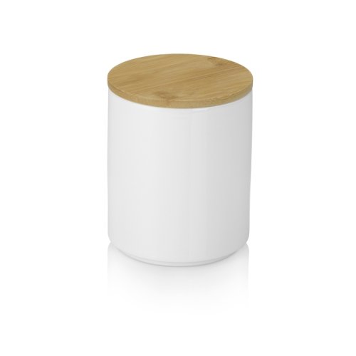 Úložné dózy Cady sú vyrobené z keramiky a majú bambusové veko so silikónovým tesnením pre spoľahlivé uzavretie. Týmto variantom je biela verzia s objemom 1 l.- Keramika s bambusovým vekom- Výška 15 cm- Priemer 12 cm- Objem 1000 ml