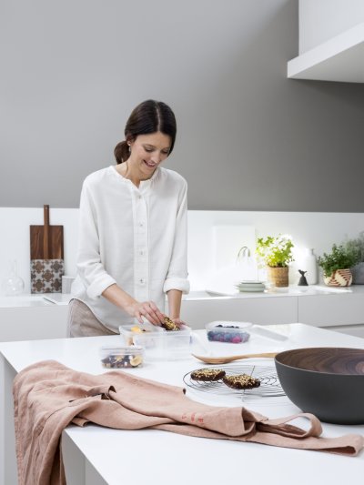 Obdĺžniková dóza Curver Snap Box 3,3 l ľahko uchová akékoľvek potraviny. Jednoduché uzatváranie a otváranie boxu uľahčí 1 klip na veku . Uložené potraviny sú chránené pred vonkajšími nežiaducimi vplyvmi . Tento praktický box veľmi dobre poslúži. Pokiaľ sa chystáte na chatu, záhradu, či rodinný piknik ľahko jedlo preveziete a nedojte tak k jeho rozsypaniu. Vnútorná časť boxu sa delí na 2 priehradky . Do každej z nich uložíte iné potraviny a nemusíte sa obávať, že sa vám jednotlivé suroviny zmiešajú. Jedlo ide ohrievať v mikrovlnnej rúre .