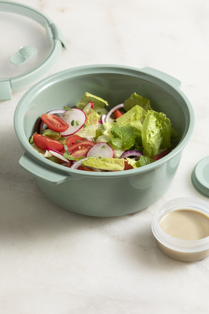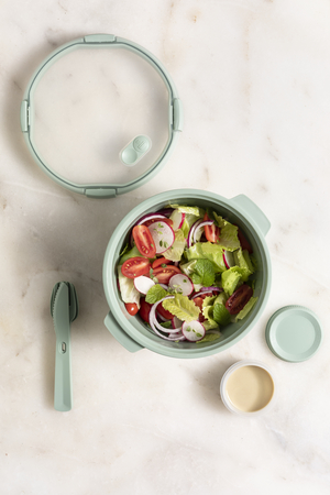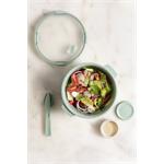 Vákuový obedový box Curver Smart To Go Lunch Kit s celkovým objemom 1,6 l je vhodný na skladovanie v chladničke av mrazničke aj na stolovanie v domácnosti, v práci, na cestách, na záhrade, v pergole či počas rodinných piknikov pod holým nebom. Je vyrobená zo 100% recyklovaného polypropylénu bez obsahu BPA a ftalátov a je opatrená certifikátom pre bezpečný styk s potravinami .
